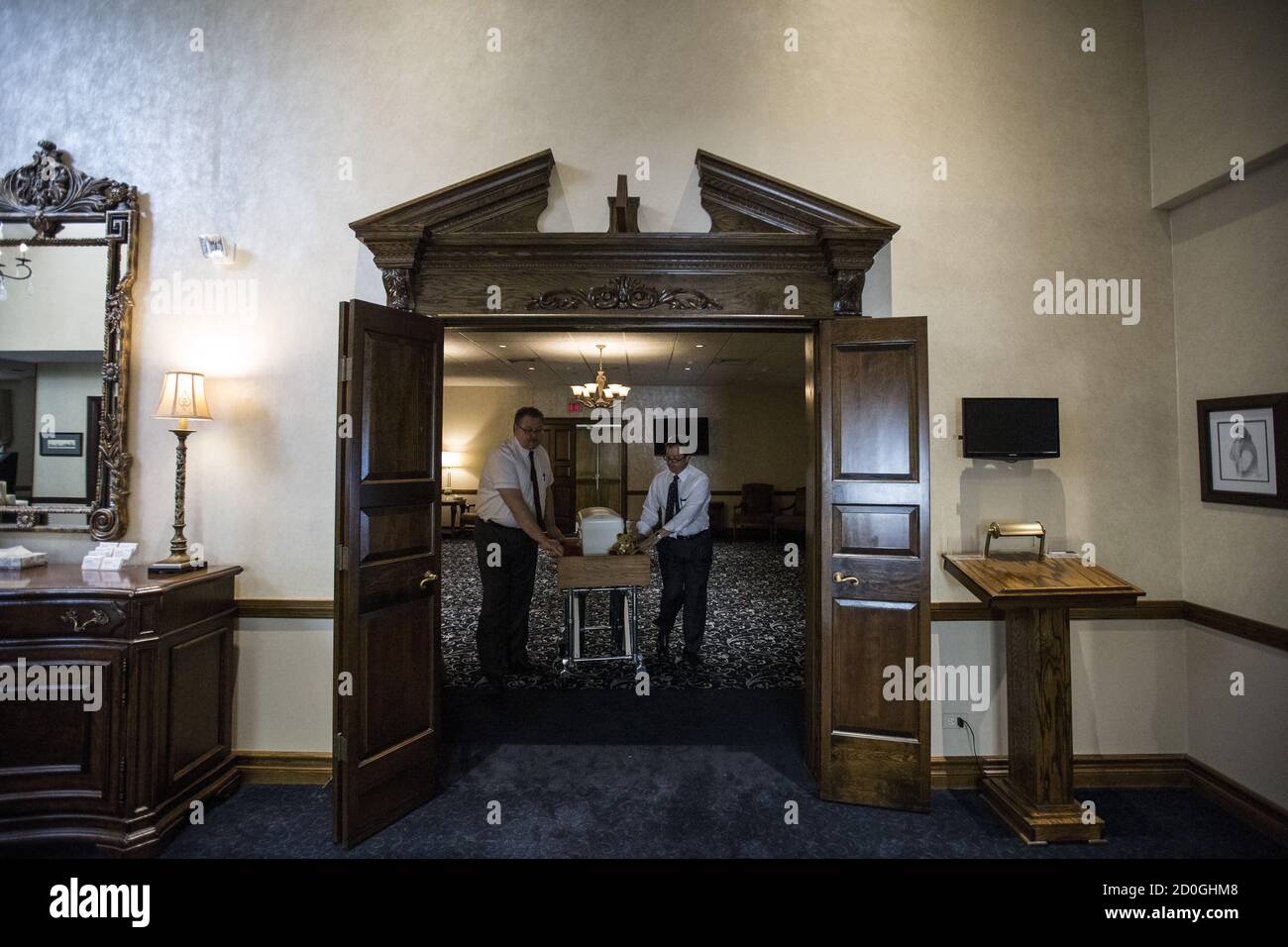 Glueckert Funeral Home Funeral Directors John Glueckert L And David Blessman Move The Casket Containing The Remains Of An Abandoned Newborn Baby From The Chapel In Arlington Heights Illinois United States June